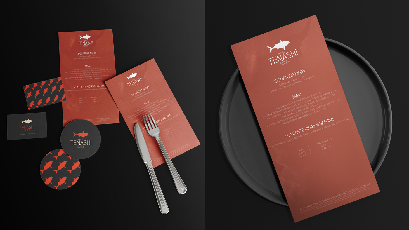 Seamlessly blended contemporary aesthetics with minimalistic elements to fashion a distinctive logotype and branding. Our focal point was the design of a logo featuring a bluefin tuna, celebrated as one of the most coveted delicacies in sushi bars and upscale restaurants worldwide—an emblematic representation of the essence of Tenashi. This iconic imagery was strategically incorporated to evoke an air of exclusivity and sophistication, harmonizing seamlessly with the brand's unwavering commitment to exceptional hospitality.